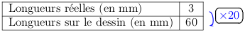 L'échelle du dessin est \(\dfrac{60}{3}=20\).