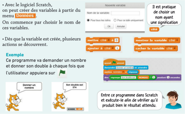 Une variable est une boite dans laquelle on stocke une information pour l'utiliser plus tard. On désigne une variable par un nom.