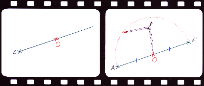 mentalement, les deux dessins se superposent après un demi-tour autour du centre de symétrie.